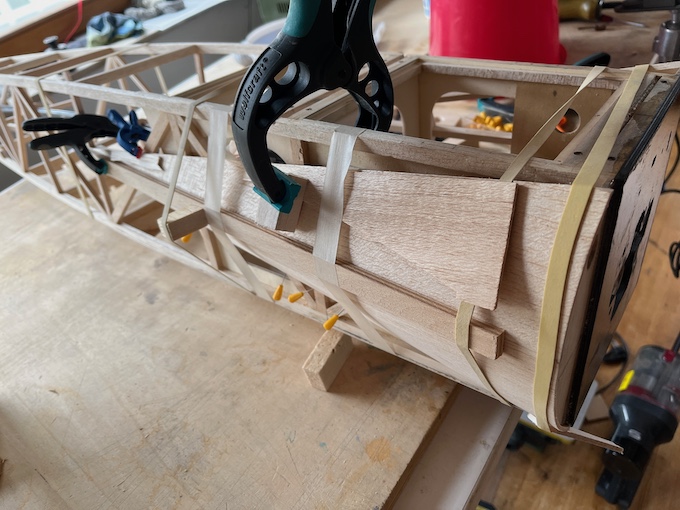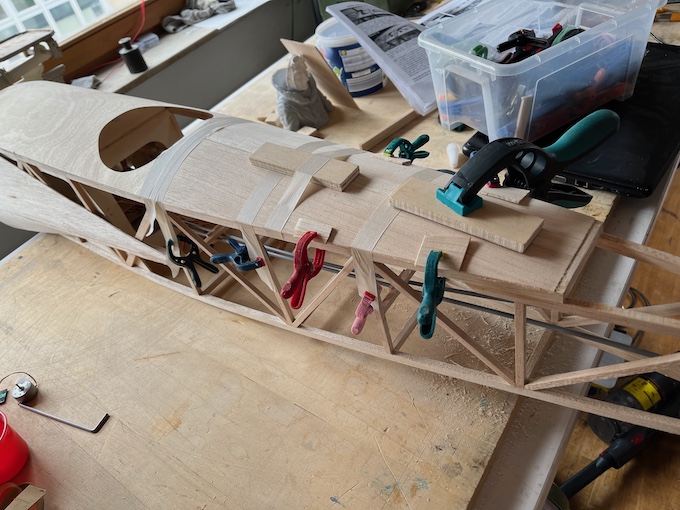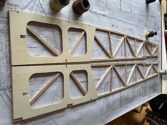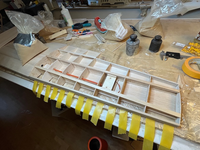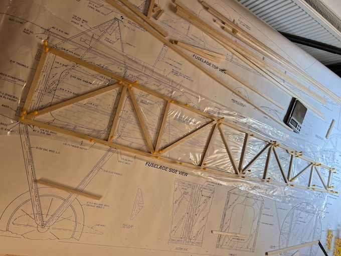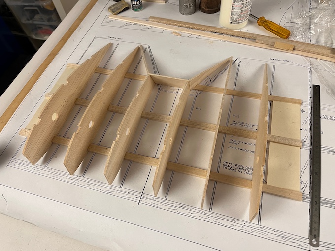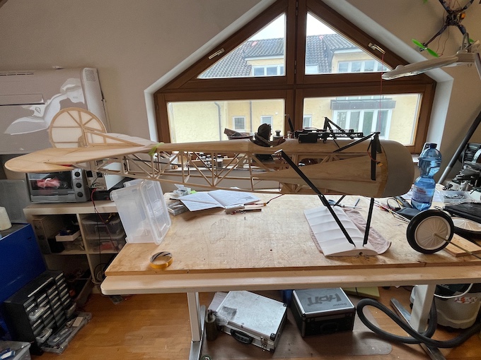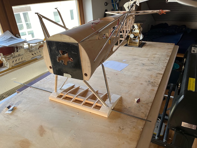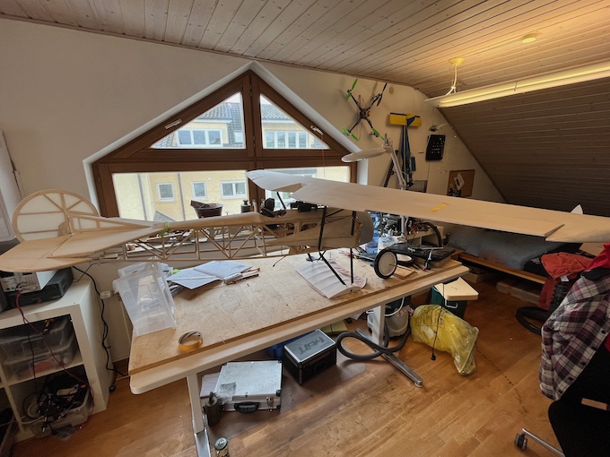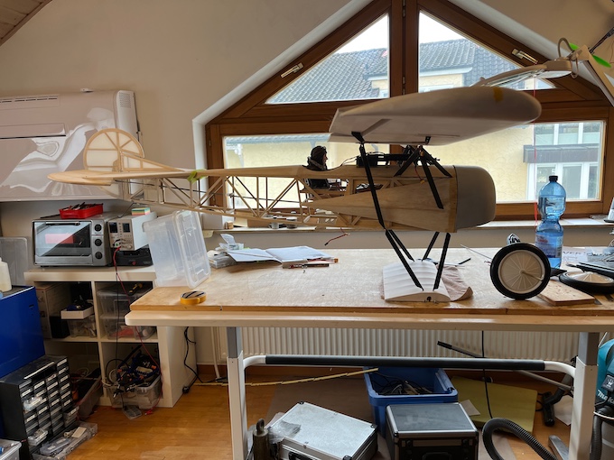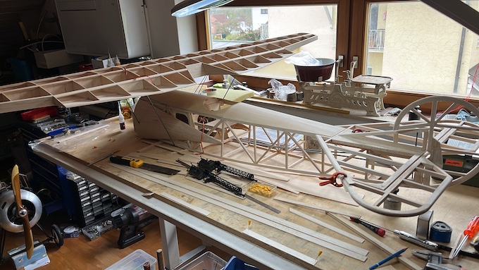 Nachdem ich einen 1:4 Fokker DVII Bausatz von Balsa USA günstig erwerben konnte und dann auch noch einen Saito Boxer, ja ich weiss nicht ganz Scale, hatte, war Ende 2023 Baubeginn.