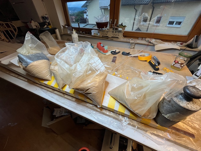 Um den Schwerpunkt einzustellen waren am Ende doch noch 470g Messing nötig.