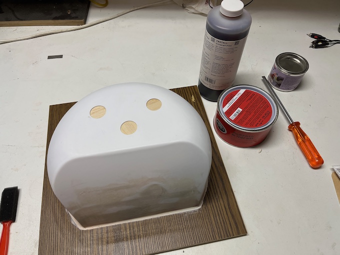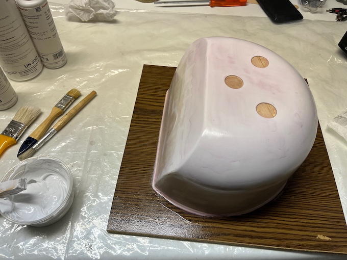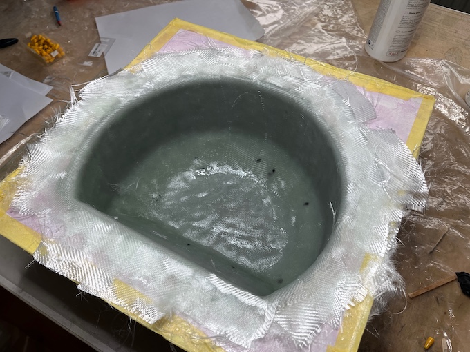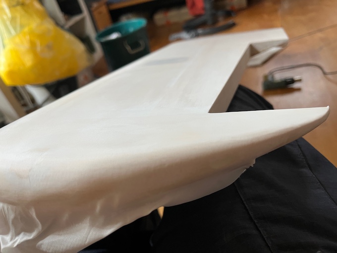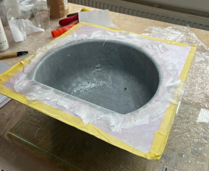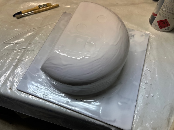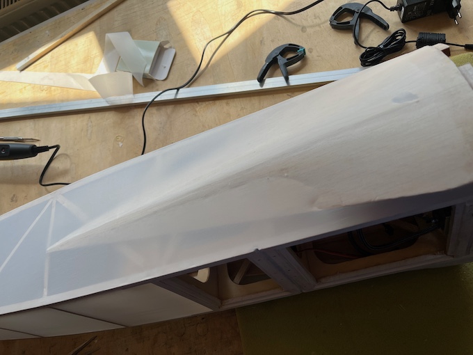 Die Motorhaube ist im Bausatz nur aus ABS. Von diesem habe ich ein Negativ abgeformt und eine GFK Haube gefertigt.