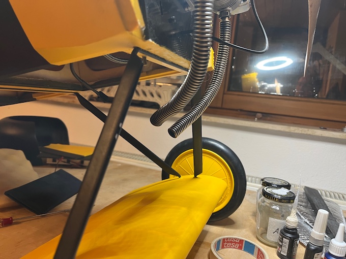 Das Fahrwerk wurde, um Gewicht zu sparen, 25mm weiter nach vorne verlegt. Dieses wurde, im Gegensatz zum Baukasten, analog zur Nieuport federnd ausgeführt.