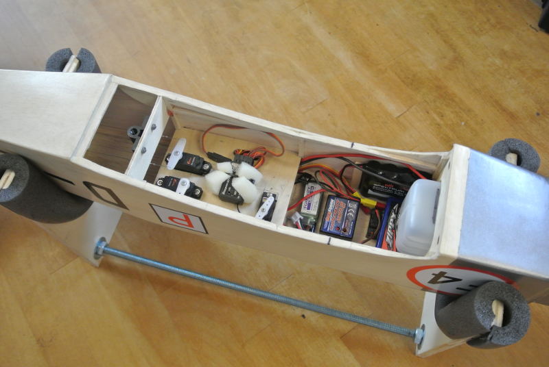 Gegenüber dem Plan hab ich der Optik habler die Querruder unten angelenkt. Die EWD habe ich mit 2.2 Grad eingestellt. Der Schwerpunkt liegt etwas hinter dem im Plan eingezeichneten bei 86mm.