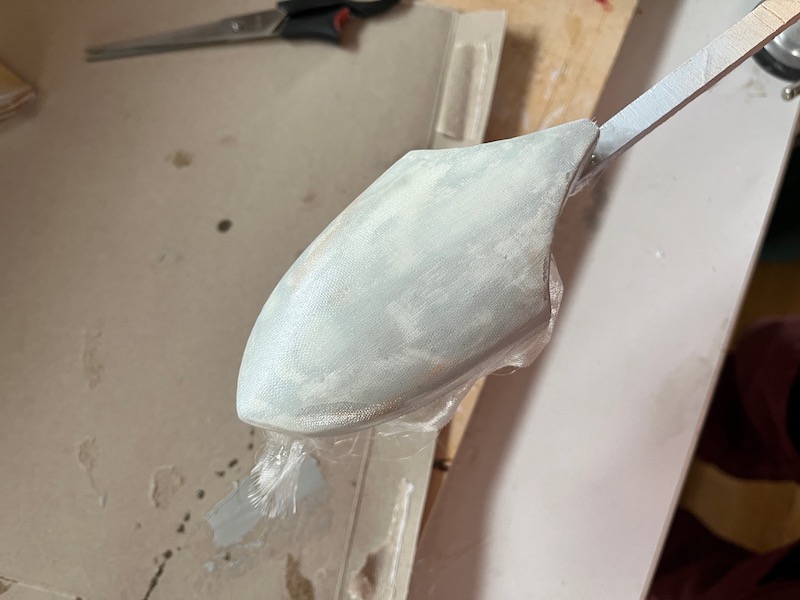 Da vorne eh etwas Trimmgewicht notwendig war und die Abdeckung aus sehr dünnen ABS tiefgezogen war, habe ich eine positiv Form aus Balsa erstellt und darauf mit 4 Lagen GFK eine stabilere Variante Laminiert.