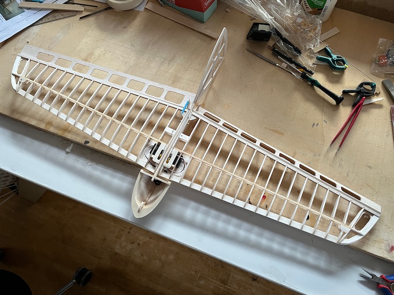 Anfang 2025 war ein Empfänger Wechsel von Hott GR12 auf Jeti Nano R7 notwendig. Der GR12 wog ohne Gehäuse 5,4g, der Nano R7 nur 2,5g. Mit dem Lipo von 12.4g waren daher zusätzlich 12.4g Blei notwendig.