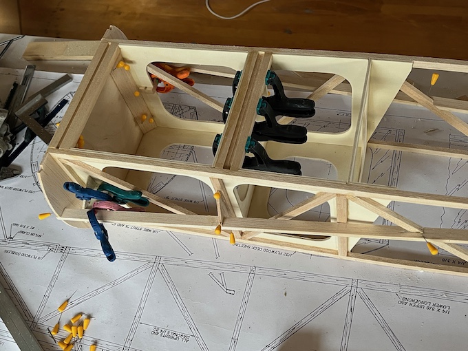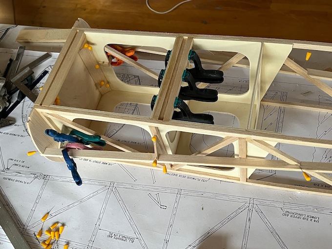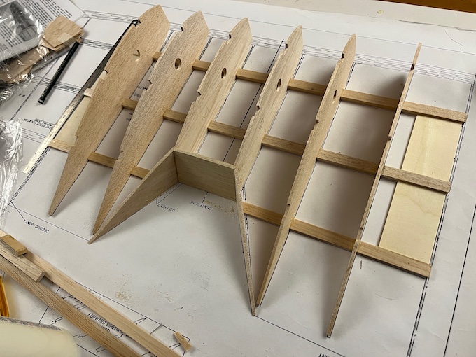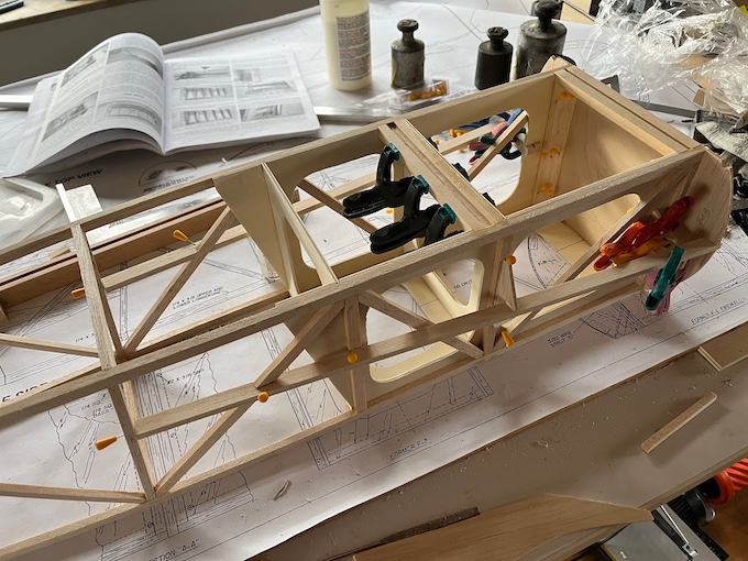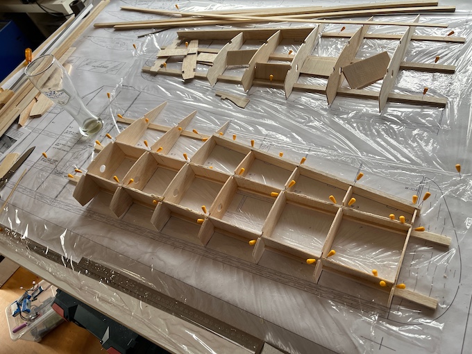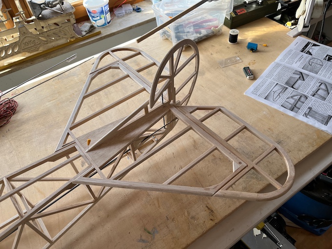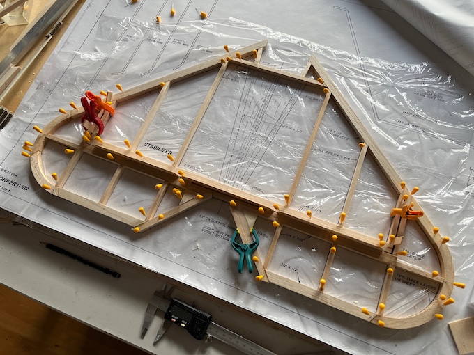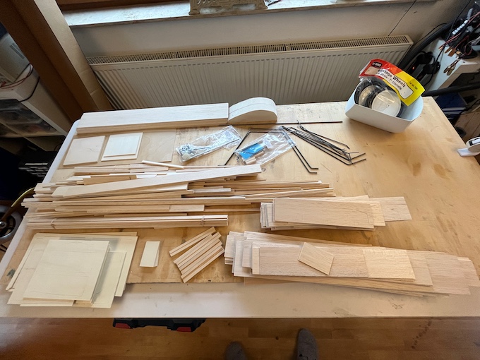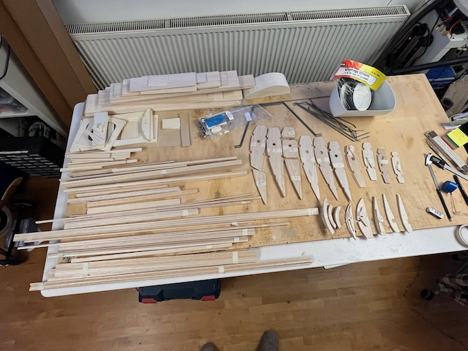 Nachdem ich einen 1:4 Fokker DVII Bausatz von Balsa USA günstig erwerben konnte und dann auch noch einen Saito Boxer, ja ich weiss nicht ganz Scale, hatte, war Ende 2023 Baubeginn.