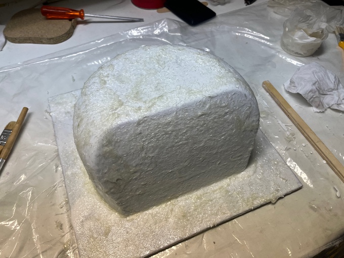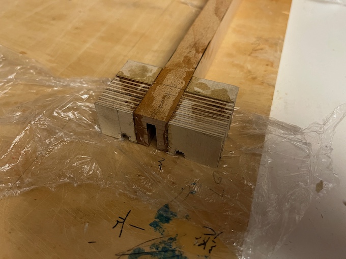 Die Motorhaube ist im Bausatz nur aus ABS. Von diesem habe ich ein Negativ abgeformt und eine GFK Haube gefertigt.