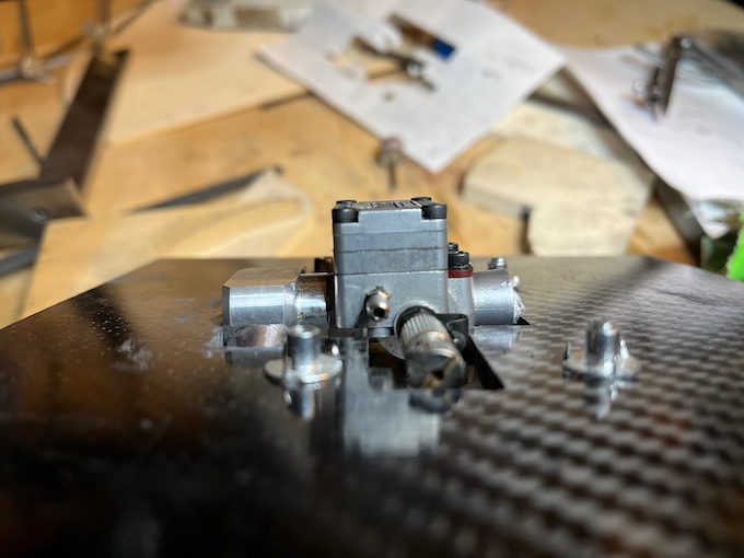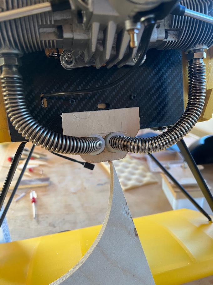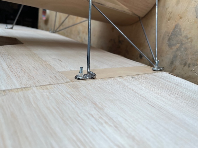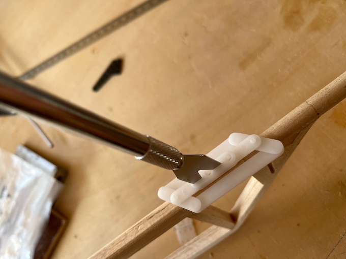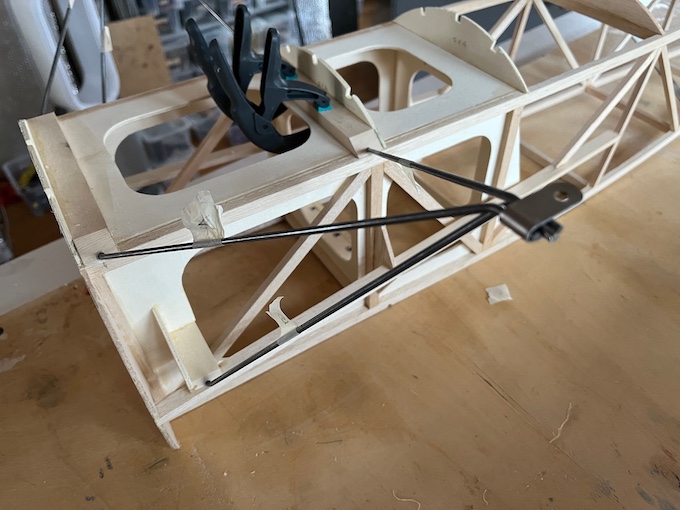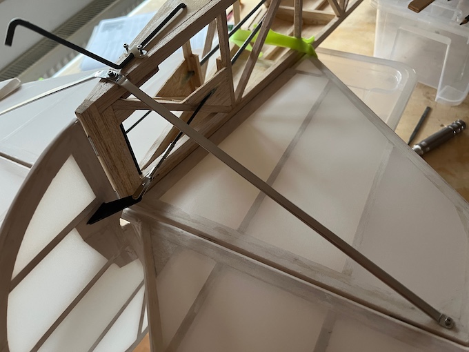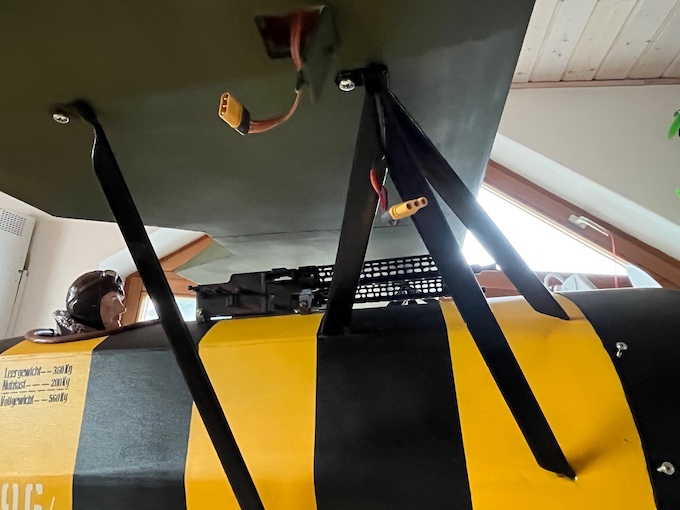 Das Fahrwerk wurde, um Gewicht zu sparen, 25mm weiter nach vorne verlegt. Dieses wurde, im Gegensatz zum Baukasten, analog zur Nieuport federnd ausgeführt.