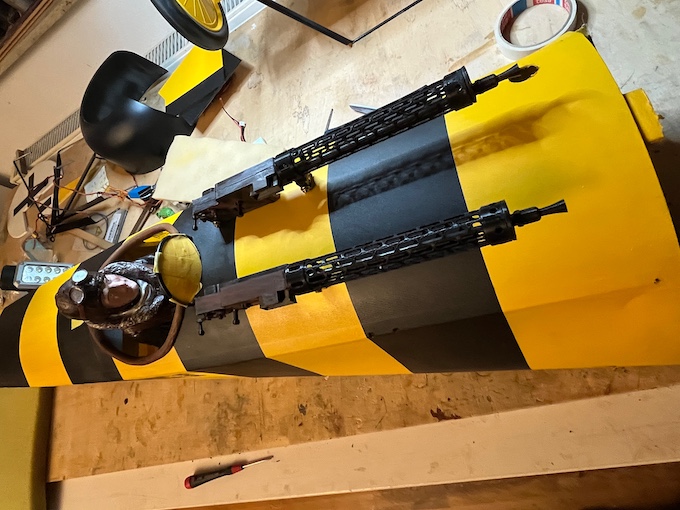 Um den Schwerpunkt einzustellen waren am Ende doch noch 470g Messing nötig.